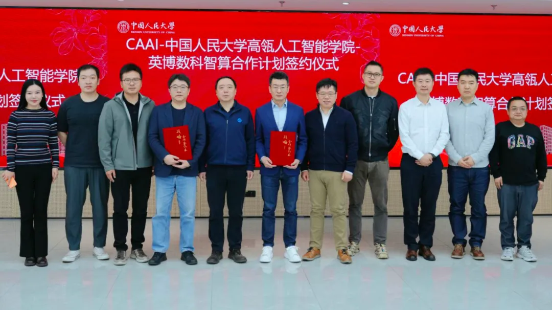 4月9日,在中国人工智能学会(CAAI)牵头推动下,中国人民大学高瓴人工智能学院与英博数科共同参与“高校学院算力支持计划”项目签约仪式在中国人民大学举行。该项目旨在深入贯彻国家深化拓展“人工智能+”行动战略部署,推进高校智能算力基础设施建设,完善人工智能人才培养体系,构建“学会搭台、企业赋能、高校落地”的科教协同创新机制。